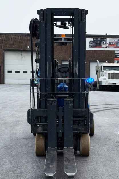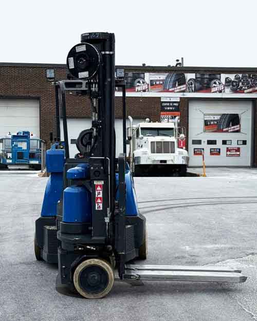 Ce chariot est équipé de fourches coulissantes avec possibilité d’extension, offrant une plus grande flexibilité pour la manutention de palettes de différentes dimensions et profondeurs. Cette caractéristique améliore la précision du positionnement des charges et l’efficacité globale des opérations.